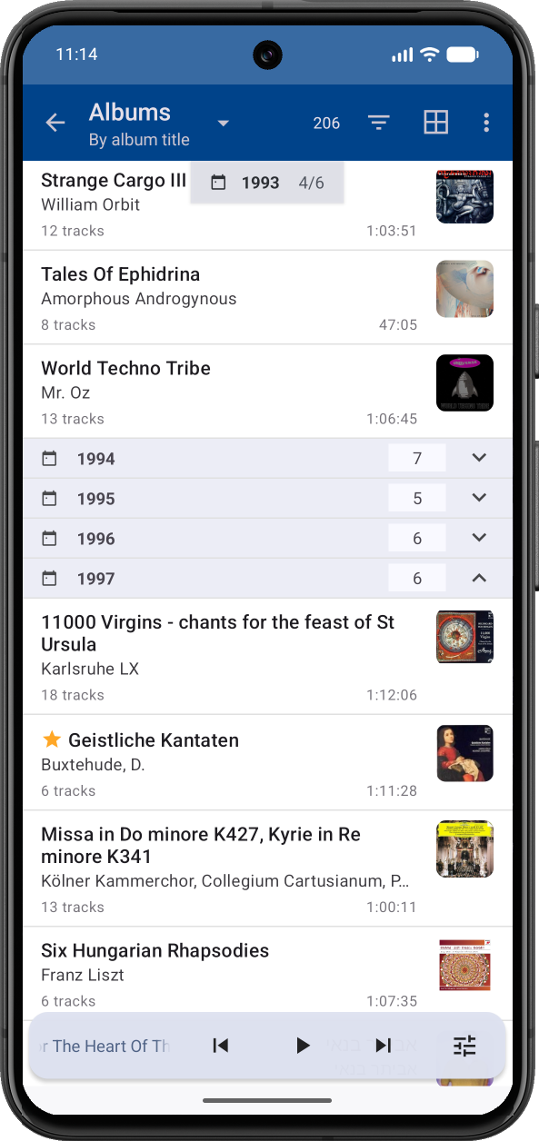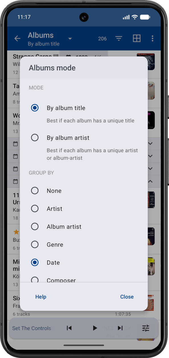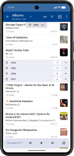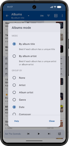 Albums with identical titles will appear as one album and might get the wrong album cover art.Albums by album artist