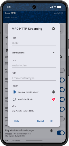 - Stop HTTP streaming when MPD playback is paused. Streaming will resume when MPD playback is resumed, unless HTTP streaming was disabled.