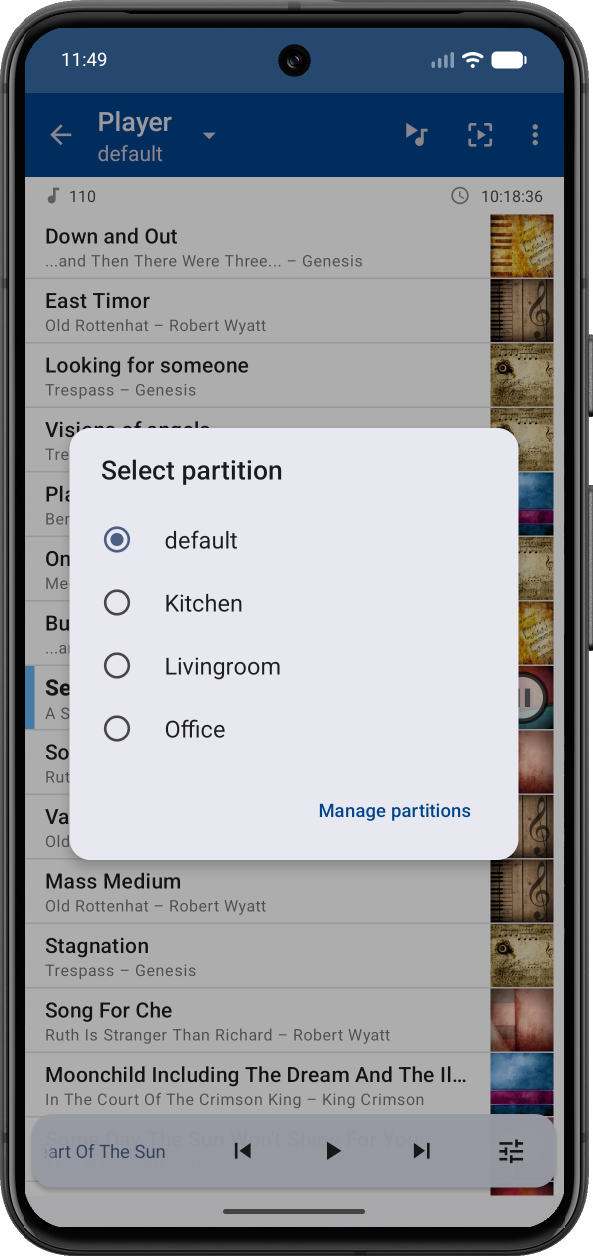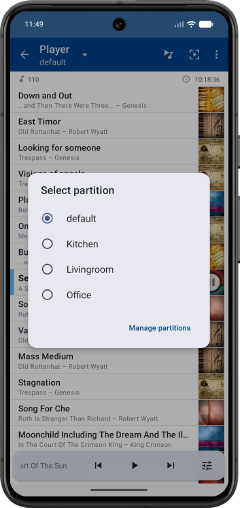 In the player view, long press the player title to open the partition selection dialog.