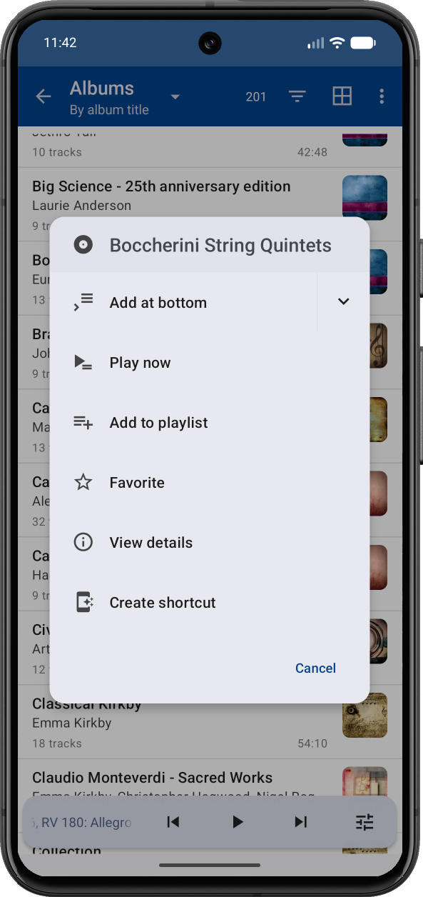 Tap an action to apply it to the selected item and make it the default add-to-queue action.
