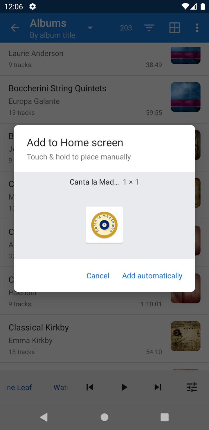 The name of the album or playlist can optionally be included in the shortcut icon.