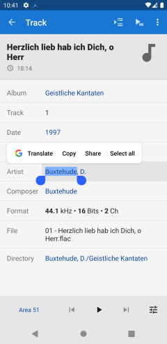 Added option to copy track details from the track details view ( Settings → Behavior → Track info selectable).